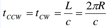 如圖(a)所示,在無旋轉(zhuǎn)條件下,兩束光傳輸時(shí)間相等為