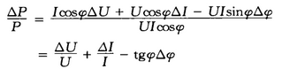 以單相負荷為例,設一次系統電壓為U,電流為I,負荷功率因數為cosφ。則負荷對應的有功功率P=UIcosφ。對U、I、cosφ分別求偏導: