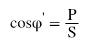 修正前的表現功率S及功率因數cosφ’按下式確定: