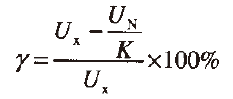 當可調穩壓源輸出一個電壓,標準表的顯示讀書為UN,被檢表的顯示讀書為UX,則被檢表的相對誤差用百分數可表示為: