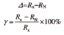 設標準電阻校準儀的輸出標準電阻量程為RN,數字多用表的顯示讀書為RX,則被檢表的絕對誤差為: