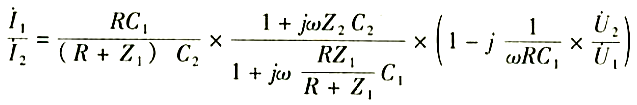 設(shè)電壓U1加在C1和C2的高壓端,電壓U2加載R的高電位端。Cx和Cs端鈕對(duì)地阻抗為Z1和Z2,注入Cx和Cs端鈕的電流為I1和I2,則