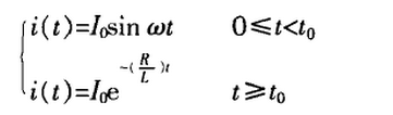 式2中,I0為電流最大值;T為電流脈沖底寬。放電電流曲線見下圖3。t<t0負載電流呈正弦變化;t≥t0負載電流呈指數變化。