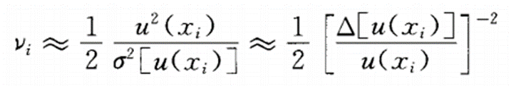 根據(jù)經(jīng)驗(yàn),按所依據(jù)的信息來源的可信程度來判斷u(xi)的相對(duì)標(biāo)準(zhǔn)不確定度Δ[u(xi)]/u(xi)表中列出了按公式計(jì)算出的自由度νi值。
