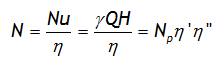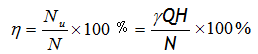 水泵效率可用下式計算,相關水泵流量、揚程、功率等參數可以根據前面章節所介紹運算獲取。