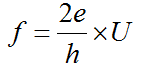 如果在超導結的結區兩端加上一直流電壓V(當然,這時電流大于臨界電流),在結區就出現高頻的超導正弦波電流,其頻率與所施加的直流電壓成正比,有如下關系式