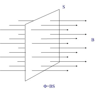 定義:設在磁感應強度為B的勻強磁場中,有一個面積為S且與磁場方向垂直的平面,磁感應強度B與面積S的乘積,叫做穿過這個平面的磁通量,簡稱磁通。