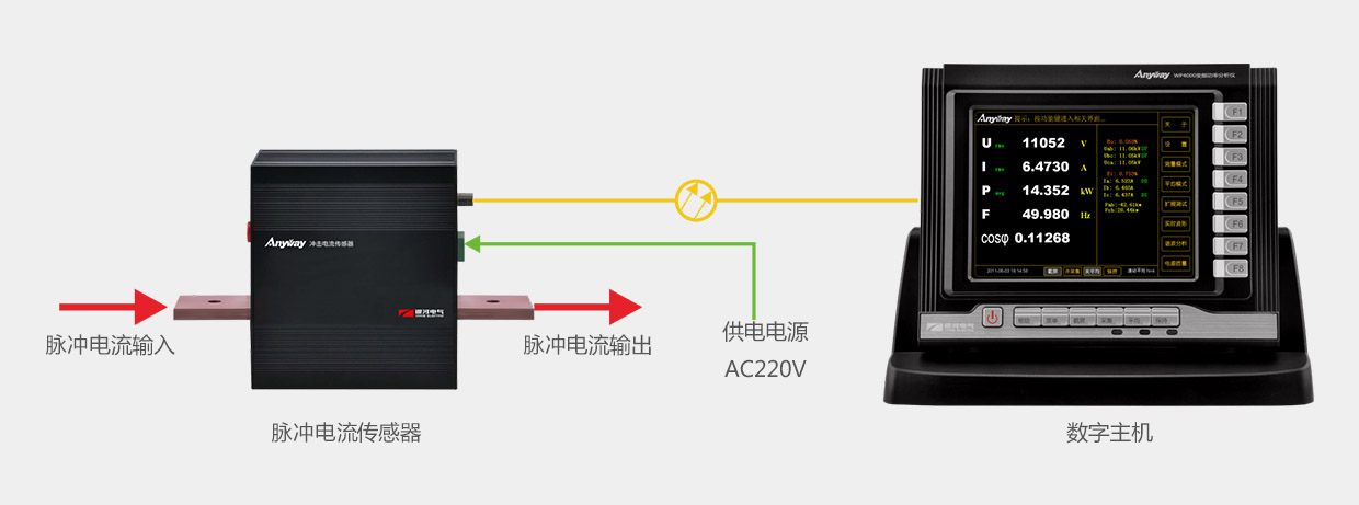 ICSA脈沖電流傳感器測量原理及其簡單,將脈沖電流傳感器串聯(lián)至測量回路中測量脈沖電流,同時將測量的模擬信號轉(zhuǎn)換成數(shù)字信號通過光纖傳輸至數(shù)字主機進行數(shù)據(jù)處理、顯示和儲存,脈沖電流傳感器采用AC220隔離電源供電。